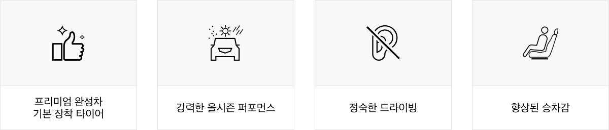 최신 컴파운드 배합을 통해 견인력·접지력·타이어 수명을 극대화시켜, 사계절 최고의 성능을 제공합니다.