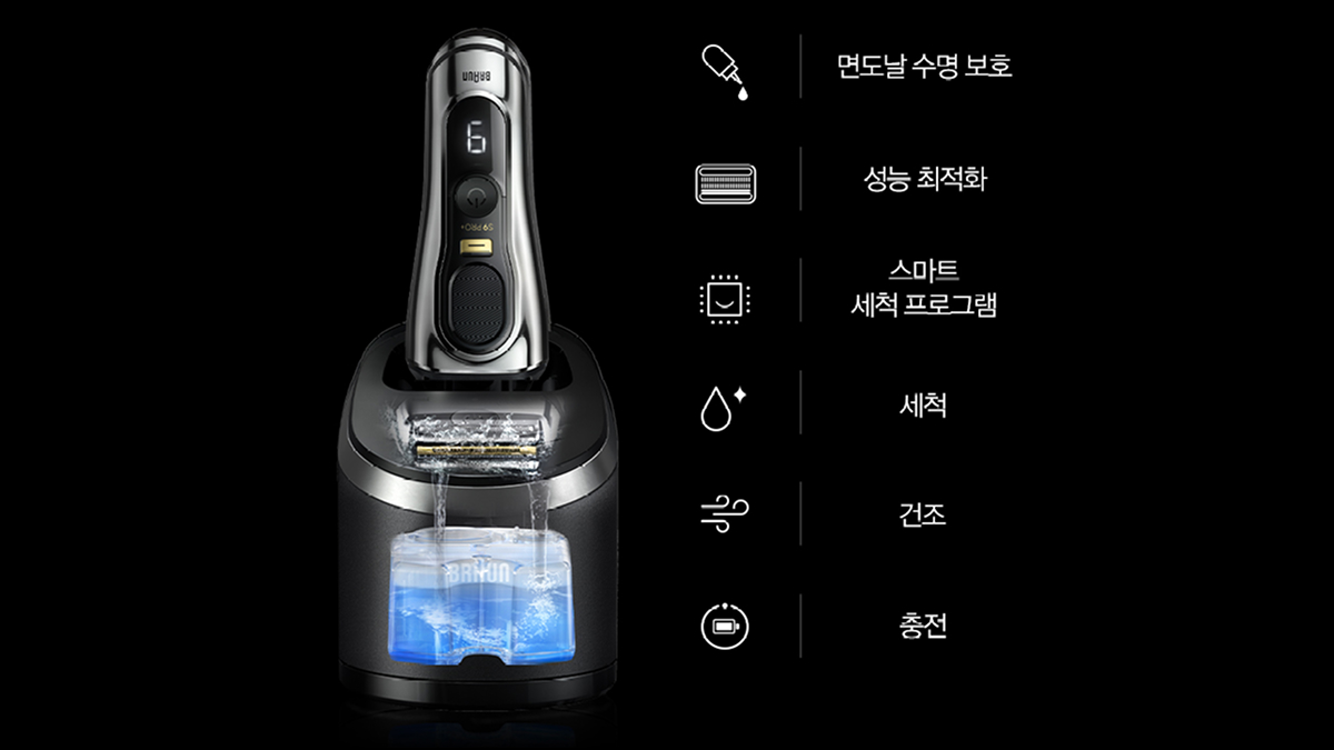 정교한 절삭력과 부드러운 밀착 면도로 완성한, 독일 정밀 기술의 브라운 전기 면도기입니다.