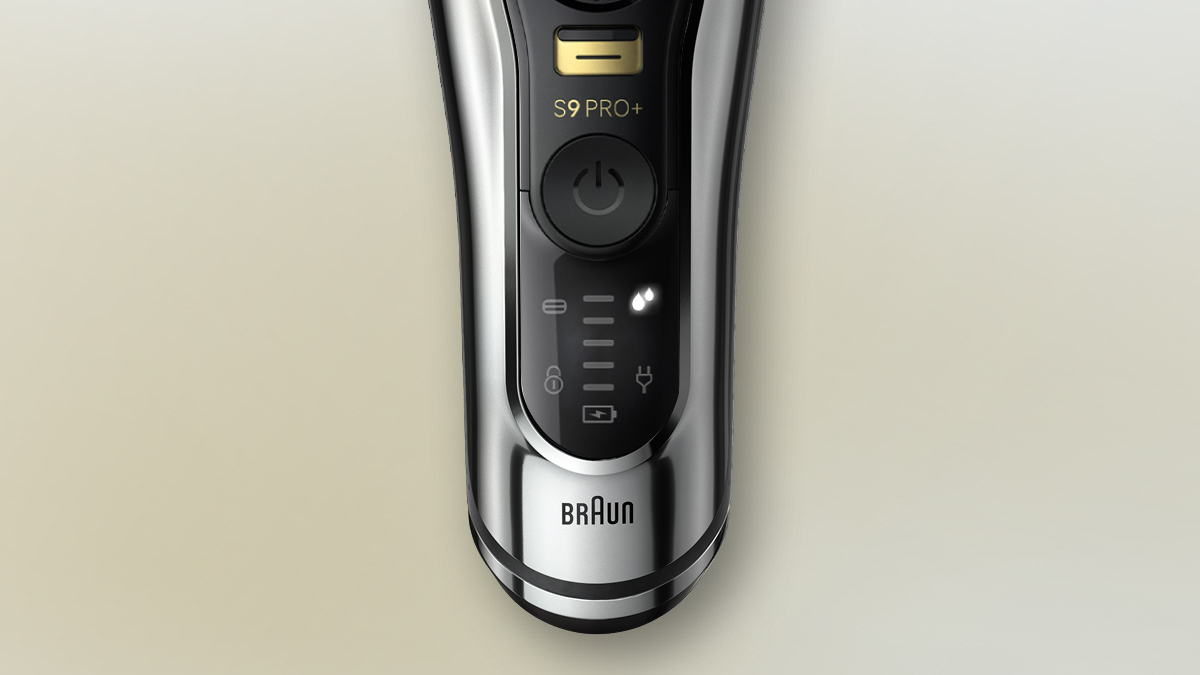 프로 디스플레이의 흰색 물방울 아이콘이 켜지면, 면도날을 세척할 타이밍입니다.