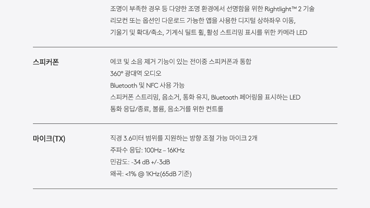 | 제품명 | CONNECT 컴퍼런스 화상회의 웹캠 |