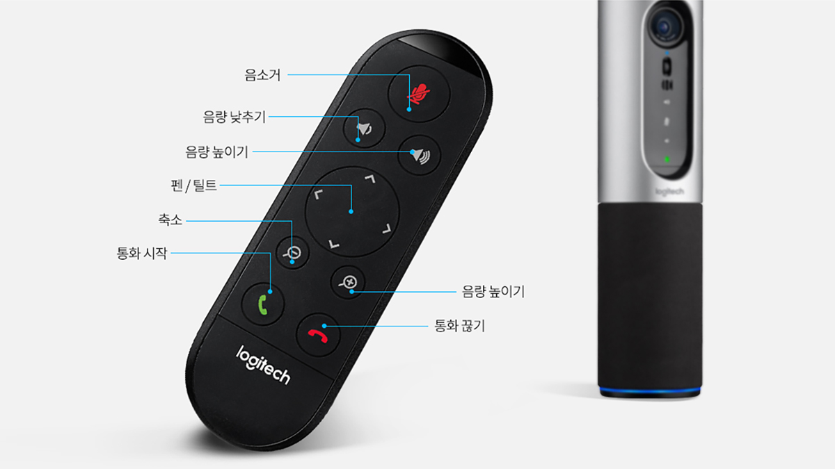 4배율 줌, 고선명 광학렌즈가 탑재되어 있어 회의실 안의 모든 사람들을 쉽게 볼 수 있습니다.