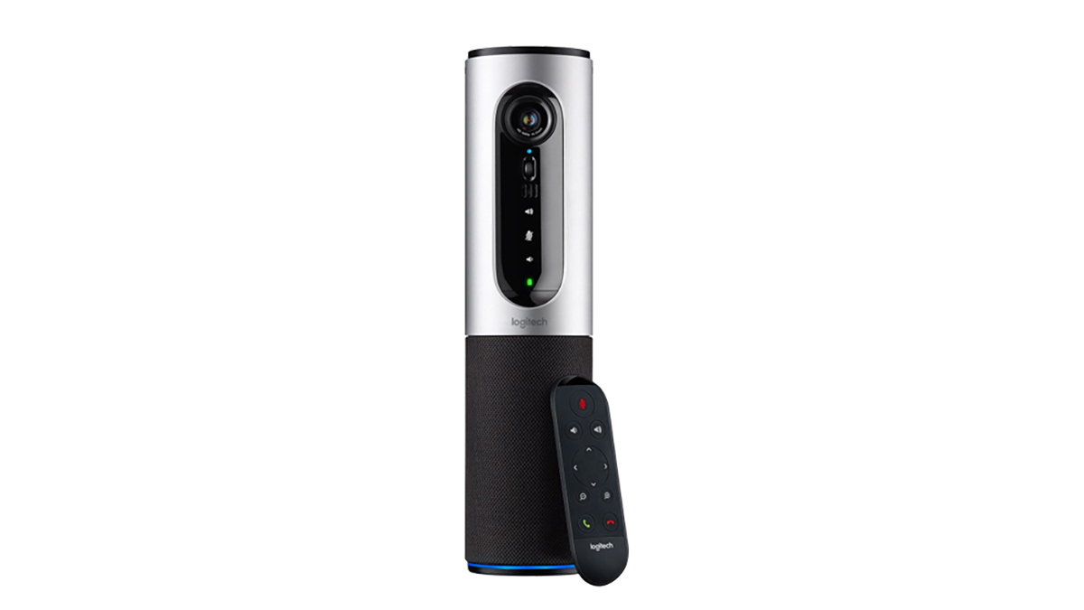 허들 룸, 홈 오피스 또는 이동 중 사용할 수 있도록 블루투스 스피커폰을 갖춘 휴대형 컨퍼런스 웹캠입니다.