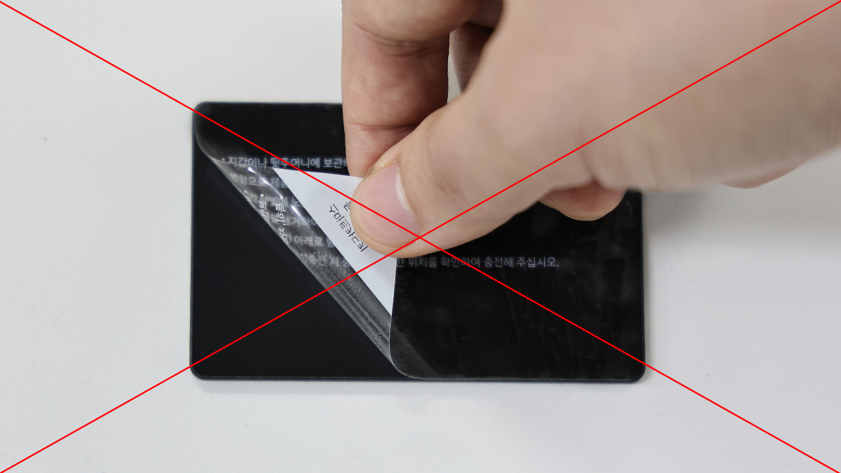 버튼 아이콘이 위로 향하도록 카드를 올바르게 놓고, 위치를 조금씩 조정해 정상 충전이 가능하도록 해주시기 바랍니다.