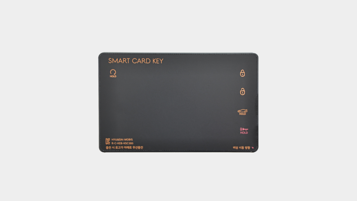 · 카드 키를 꺼내지 않아도 스마트 키와 동일하게 도어 잠금/해제, 시동, 스마트 트렁크를 사용할 수 있으며 생활 방수까지 가능한 제품입니다.
