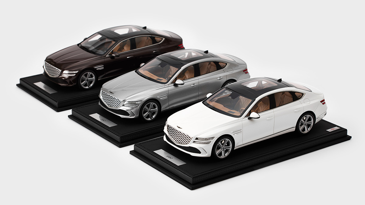 제네시스 G80 실차 데이터를 기반으로 제작한 1:18 사이즈의 스케일 모델카입니다.