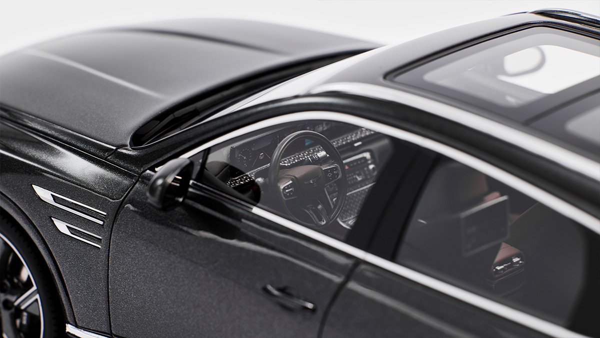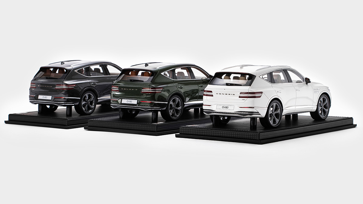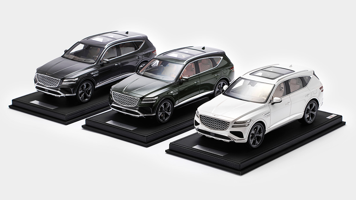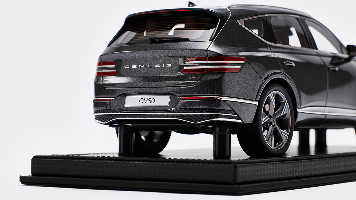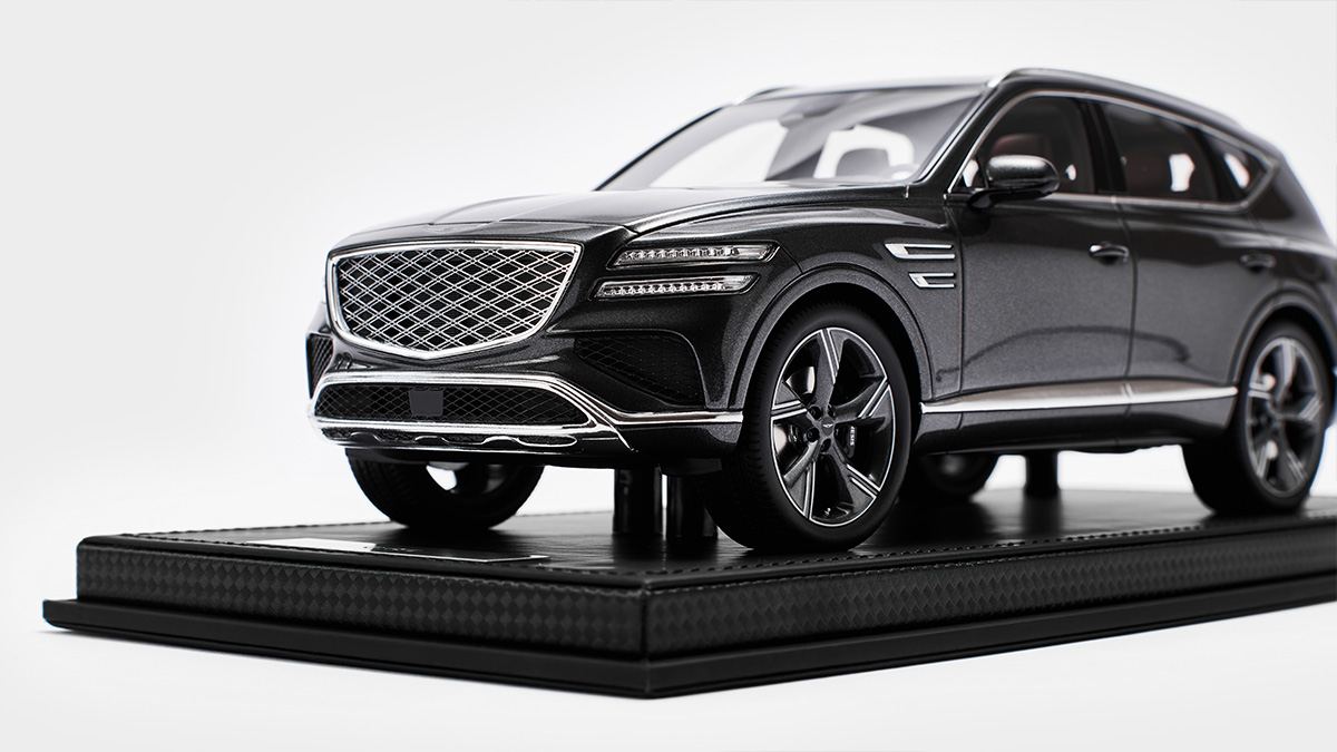 제네시스 GV80 실차 데이터를 기반으로 제작한 1:18 사이즈의 스케일 모델카입니다.