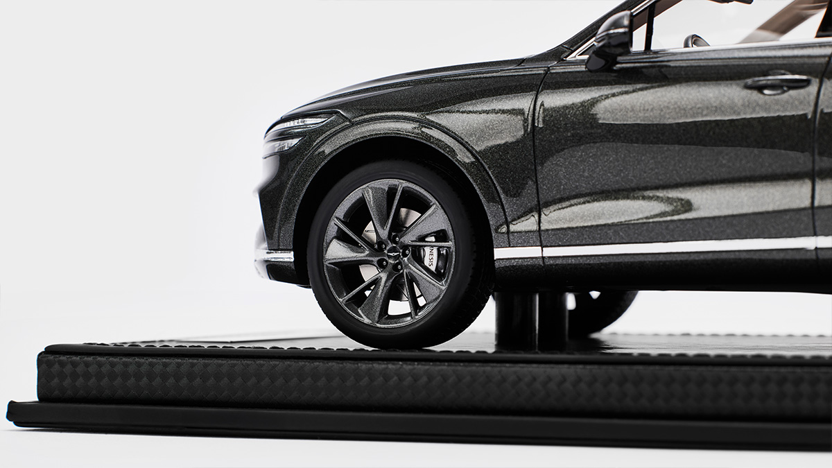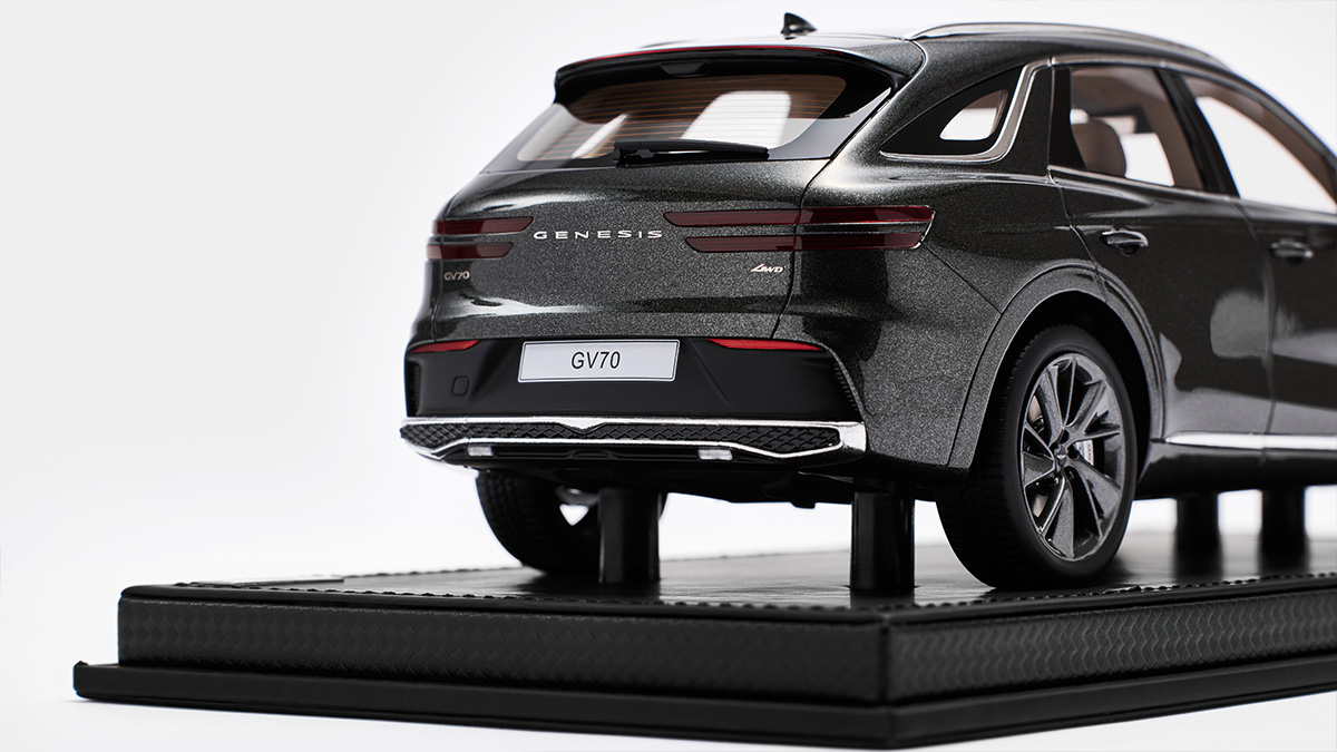 제네시스 GV70 실차 데이터를 기반으로 제작한 1:18 사이즈의 스케일 모델카입니다.