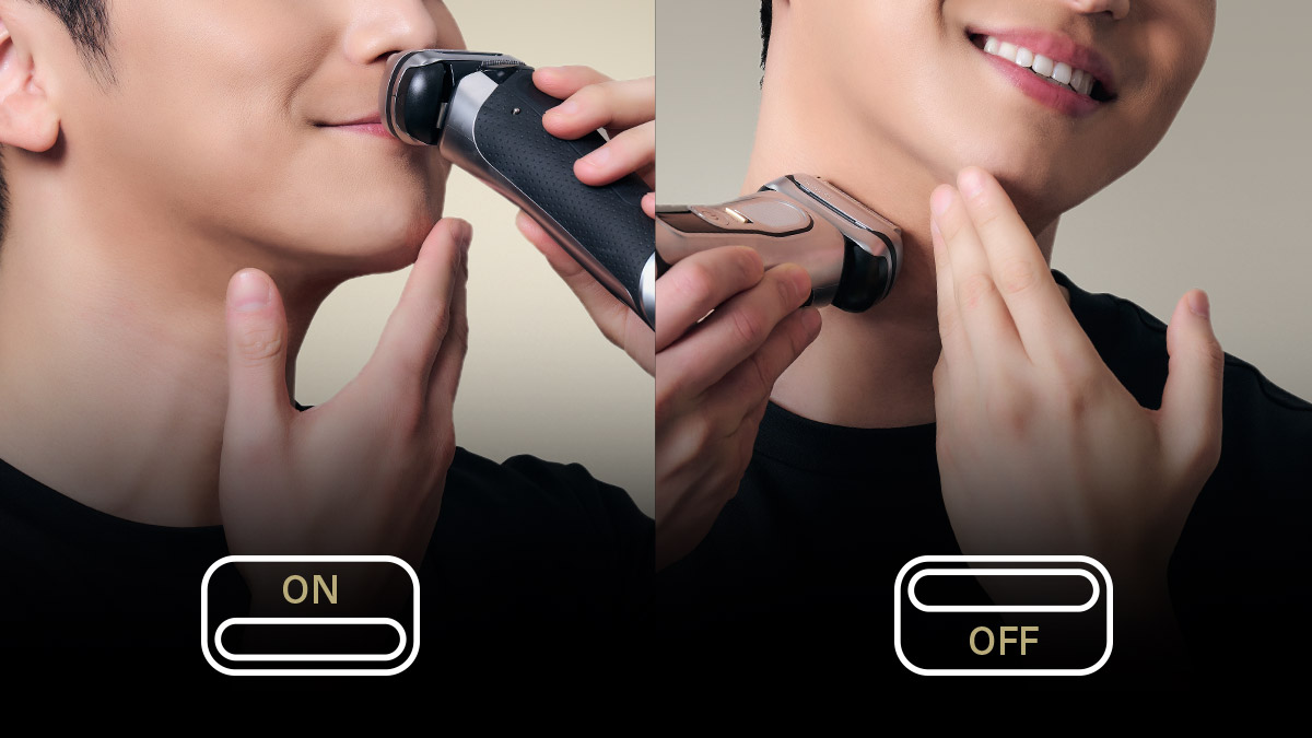- 헤드 고정 ON : 턱선·인중과 같이 까다로운 부위를 집중 면도