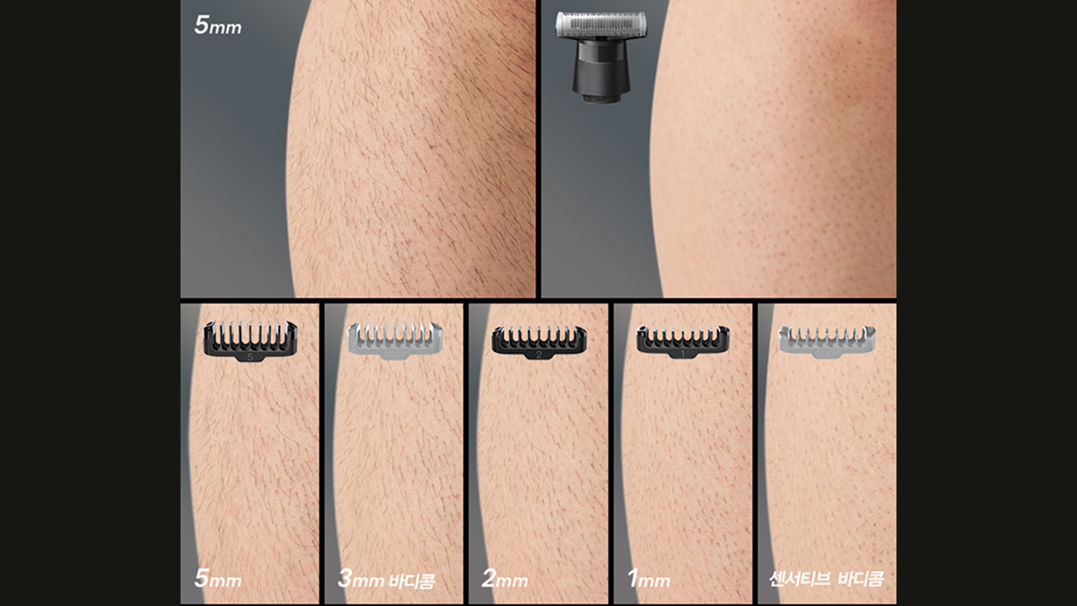 0~5mm 전용콤 5종으로 취향에 따라 제모 길이를 조절하여 쉐이빙할 수 있습니다.