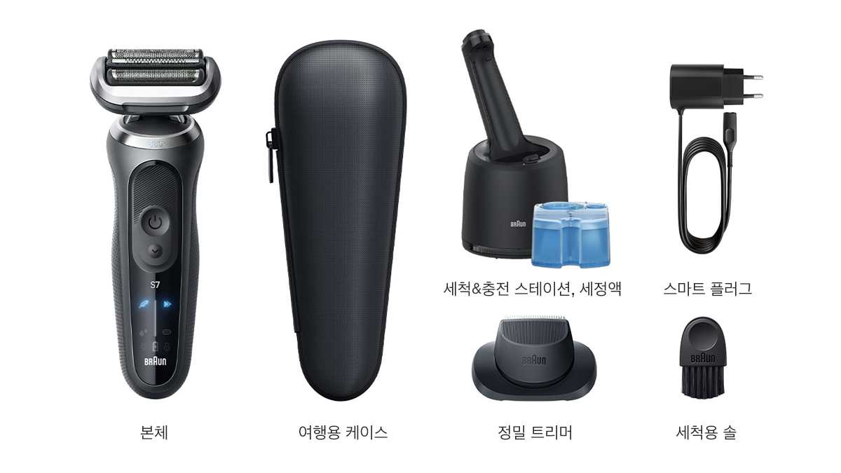| 구성 | 본체, 여행용 케이스, 정밀트리머, 세척&충전 스탠드, 스마트 플러그, 세정액, 세척용 솔 |