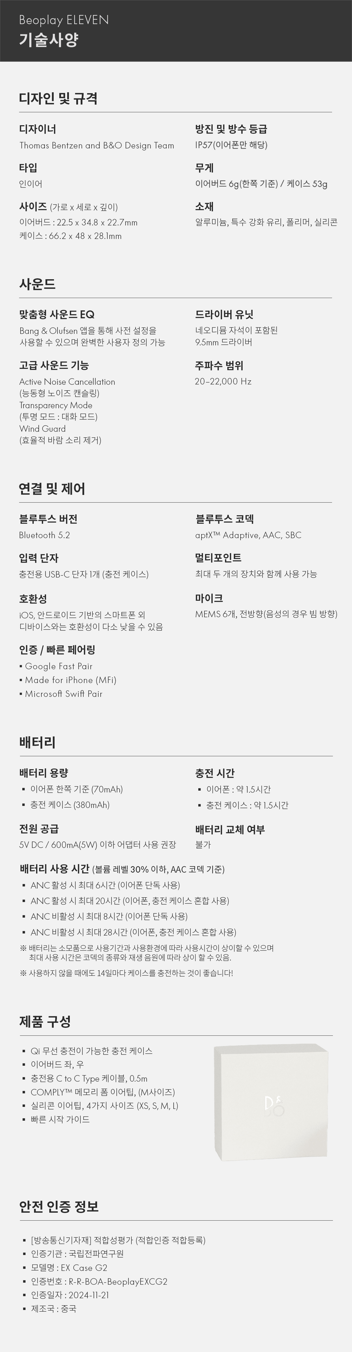 제품명 베오플레이 일레븐 노이즈 캔슬링 완전 무선 이어폰 [3 colors]
